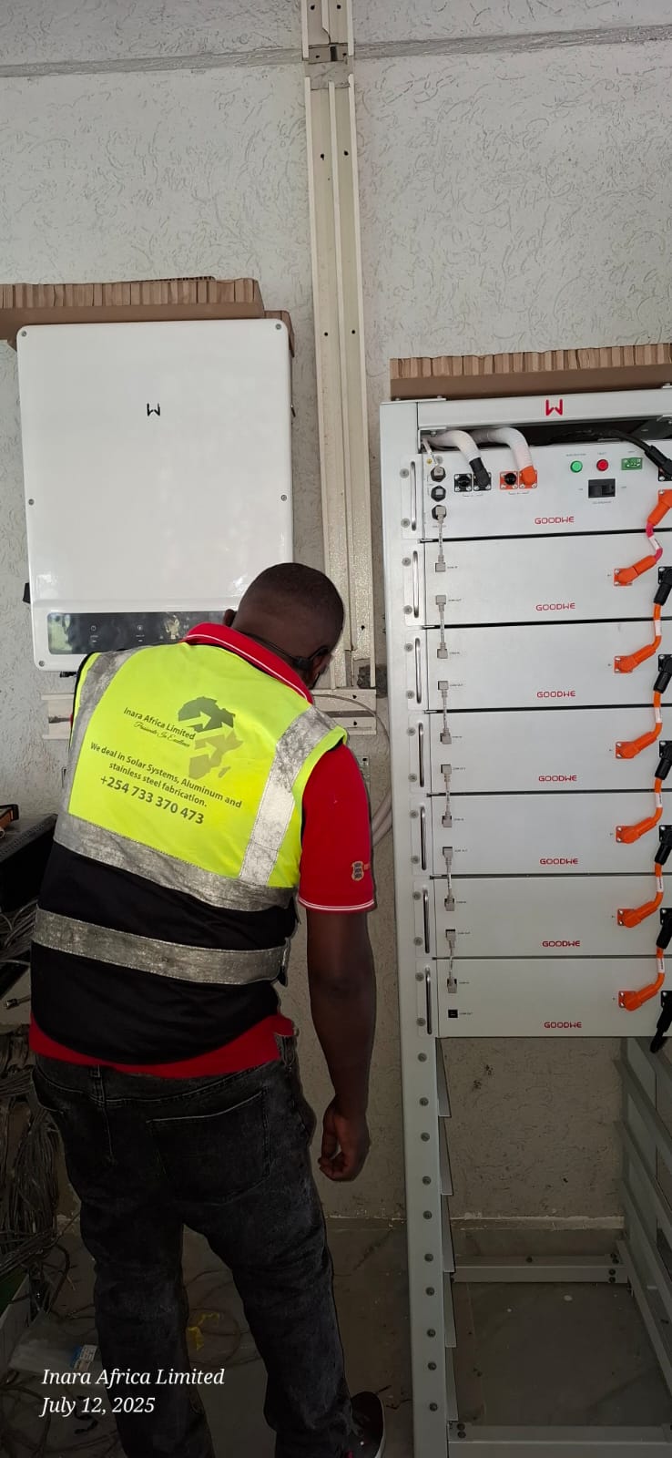 Nanyuki Project. 30kw system with 30kwh lithium batteries and 54panels. Supporting a hotel in Nanyuki. All the lighting and entertainment equipment